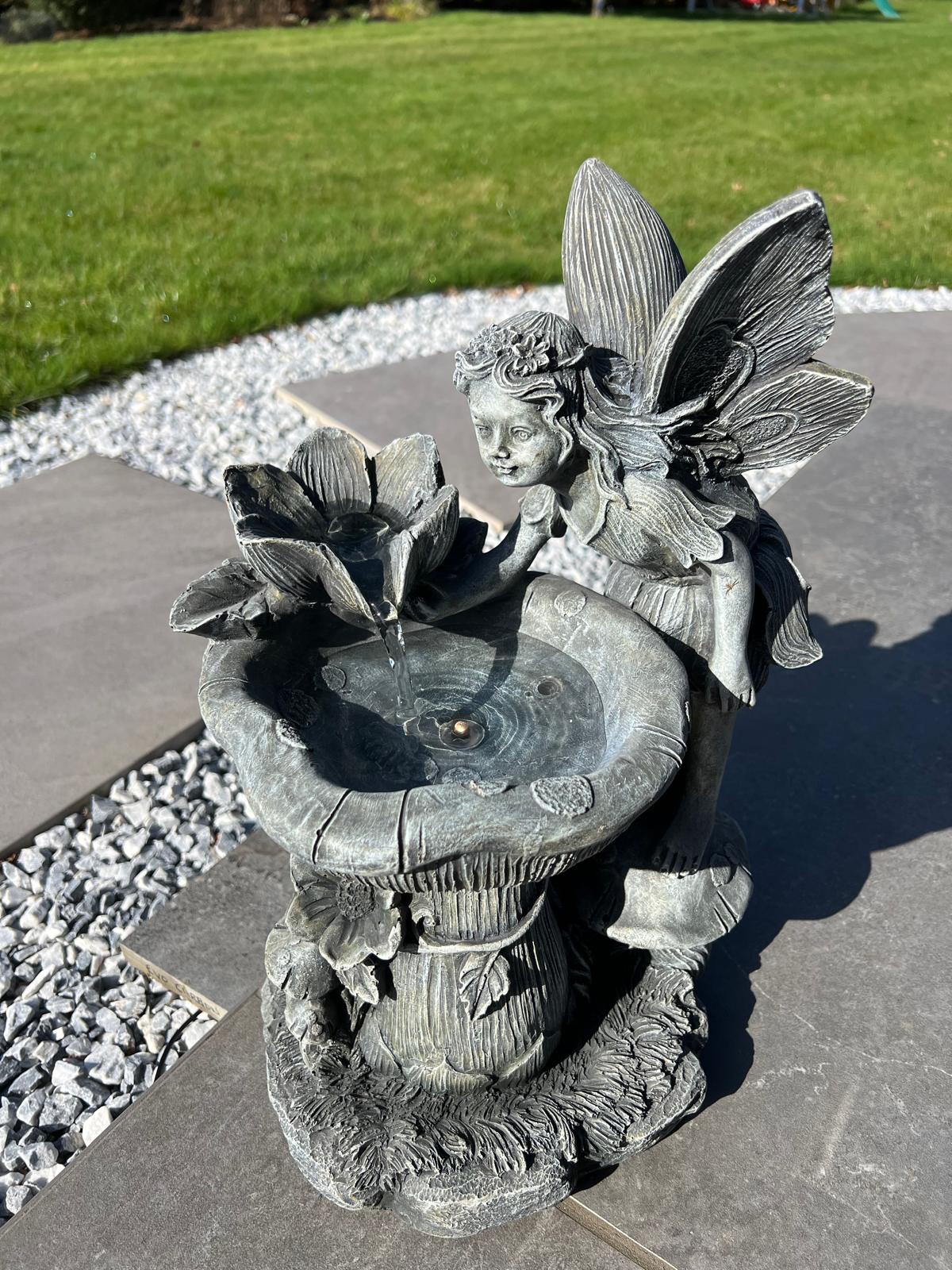 - Solar powered fairy water feature with LED lights